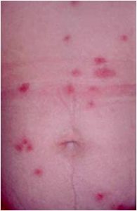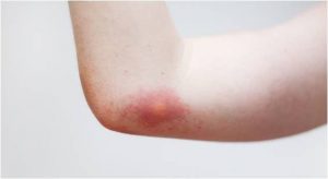 Si la picadura produce una zona inflamada con un punto central que es donde ha picado el bicho, basta con dar frío local y si no mejora crema de corticoide.